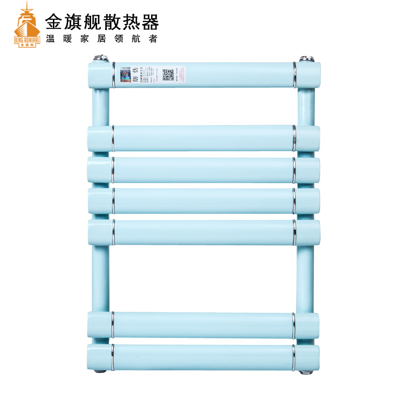 金旗舰卫浴暖气片简约、时尚、美观、大方,既可以取暖,又可以作为毛巾架使用,是卫生间必备产品;其容水量大,水流量大;全辐射散热,比对流暖气片对水温要求低,反应灵敏,一旦启动,立即加热您的皮肤和空气;停暖后,仍能持续供暖,直至水温降至室温水平。