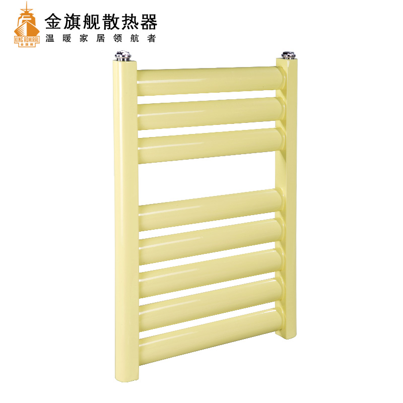 金旗舰卫浴暖气片简约、时尚、美观、大方,既可以取暖,又可以作为毛巾架使用,是卫生间必备产品;其容水量大,水流量大;全辐射散热,比对流暖气片对水温要求低,反应灵敏,一旦启动,立即加热您的皮肤和空气;停暖后,仍能持续供暖,直至水温降至室温水平。