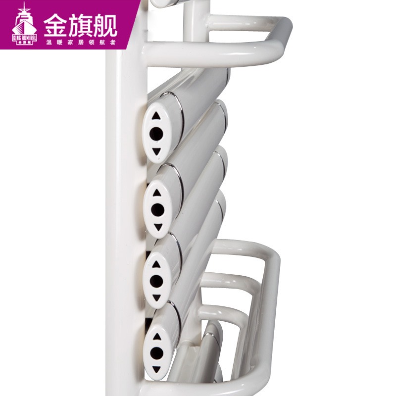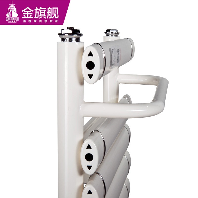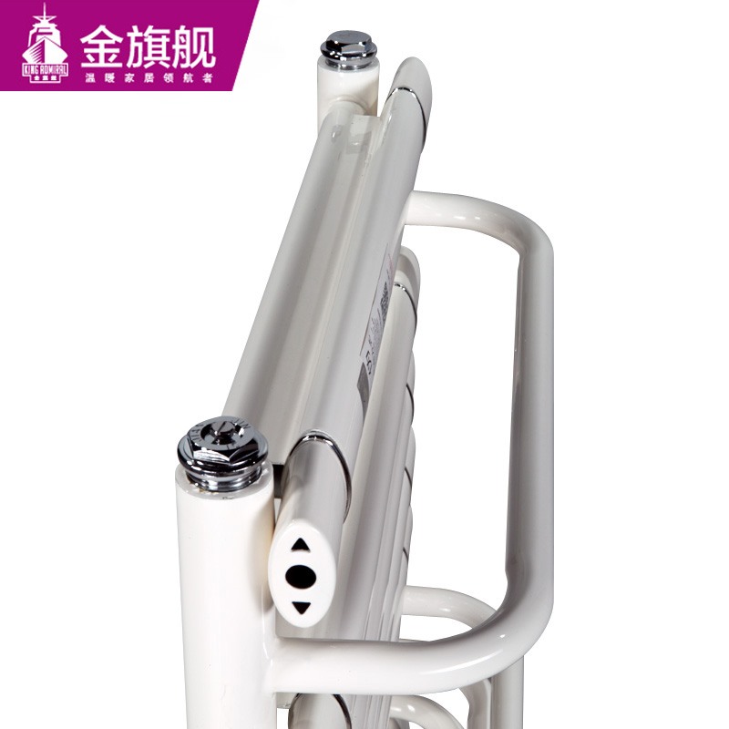 金旗舰卫浴暖气片简约、时尚、美观、大方,既可以取暖,又可以作为毛巾架使用,是卫生间必备产品;其容水量大,水流量大;全辐射散热,比对流暖气片对水温要求低,反应灵敏,一旦启动,立即加热您的皮肤和空气;停暖后,仍能持续供暖,直至水温降至室温水平。